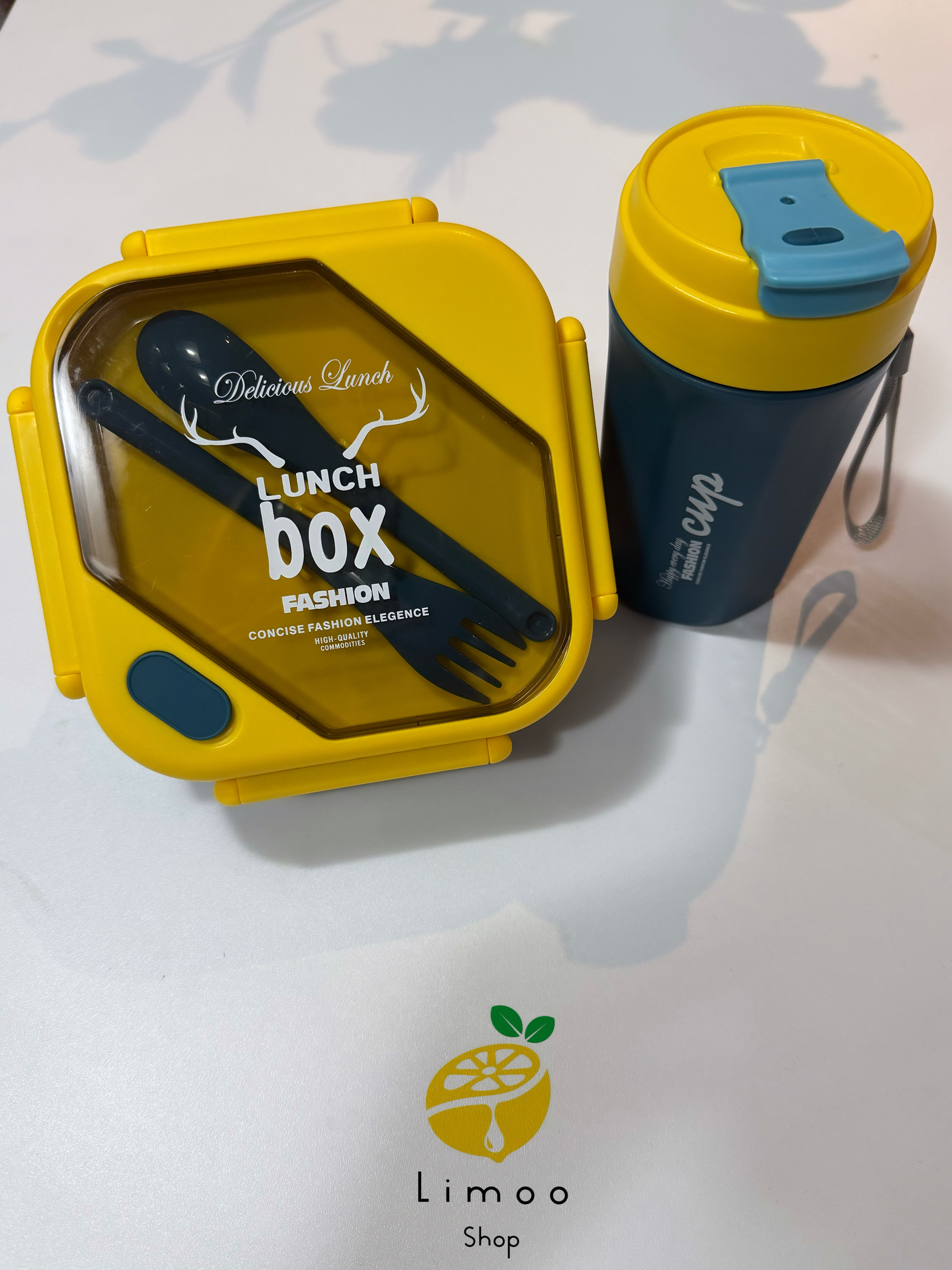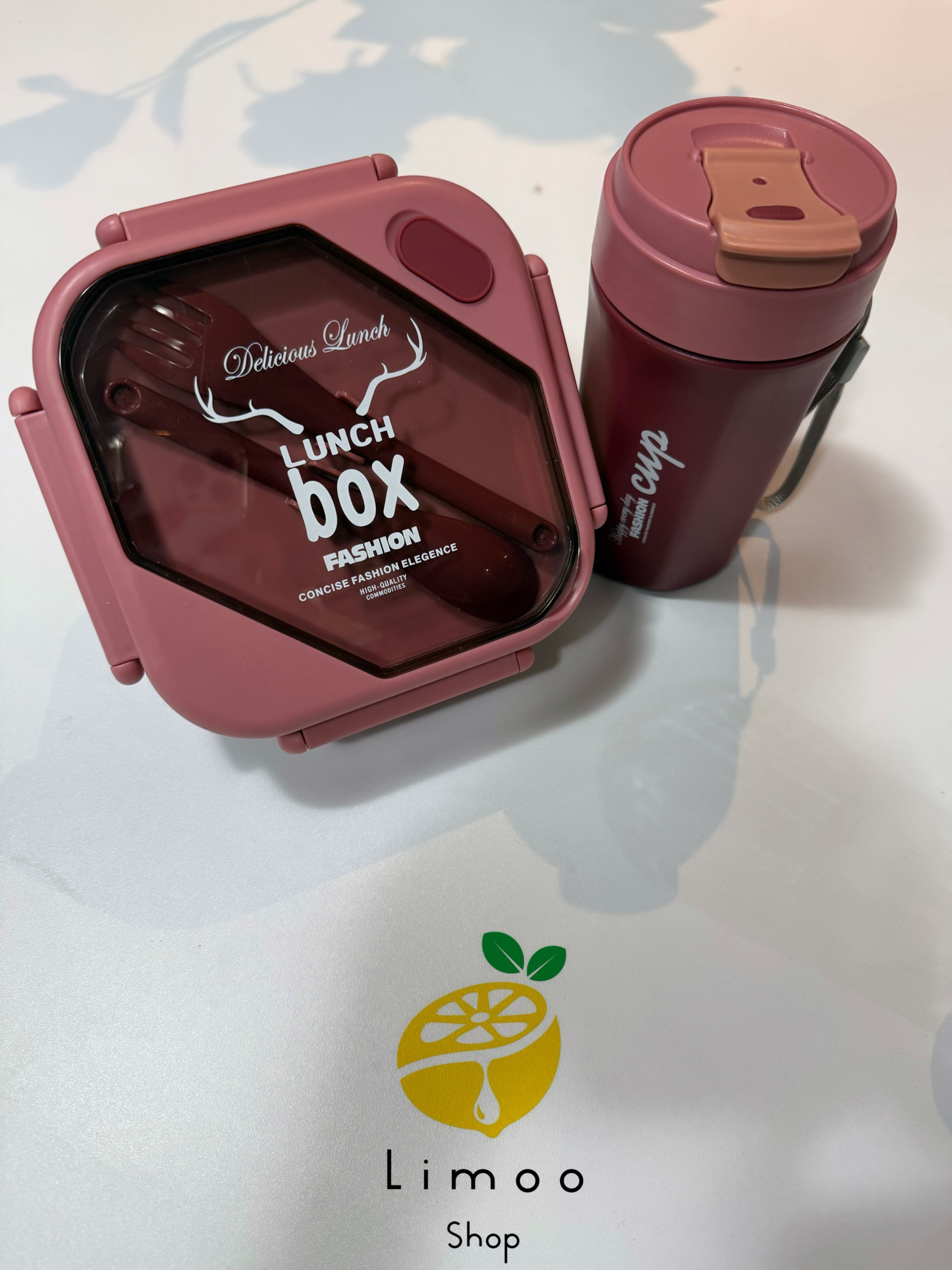 ست لانچ باکس غذا همراه با قمقمه با قاشق و چنگال